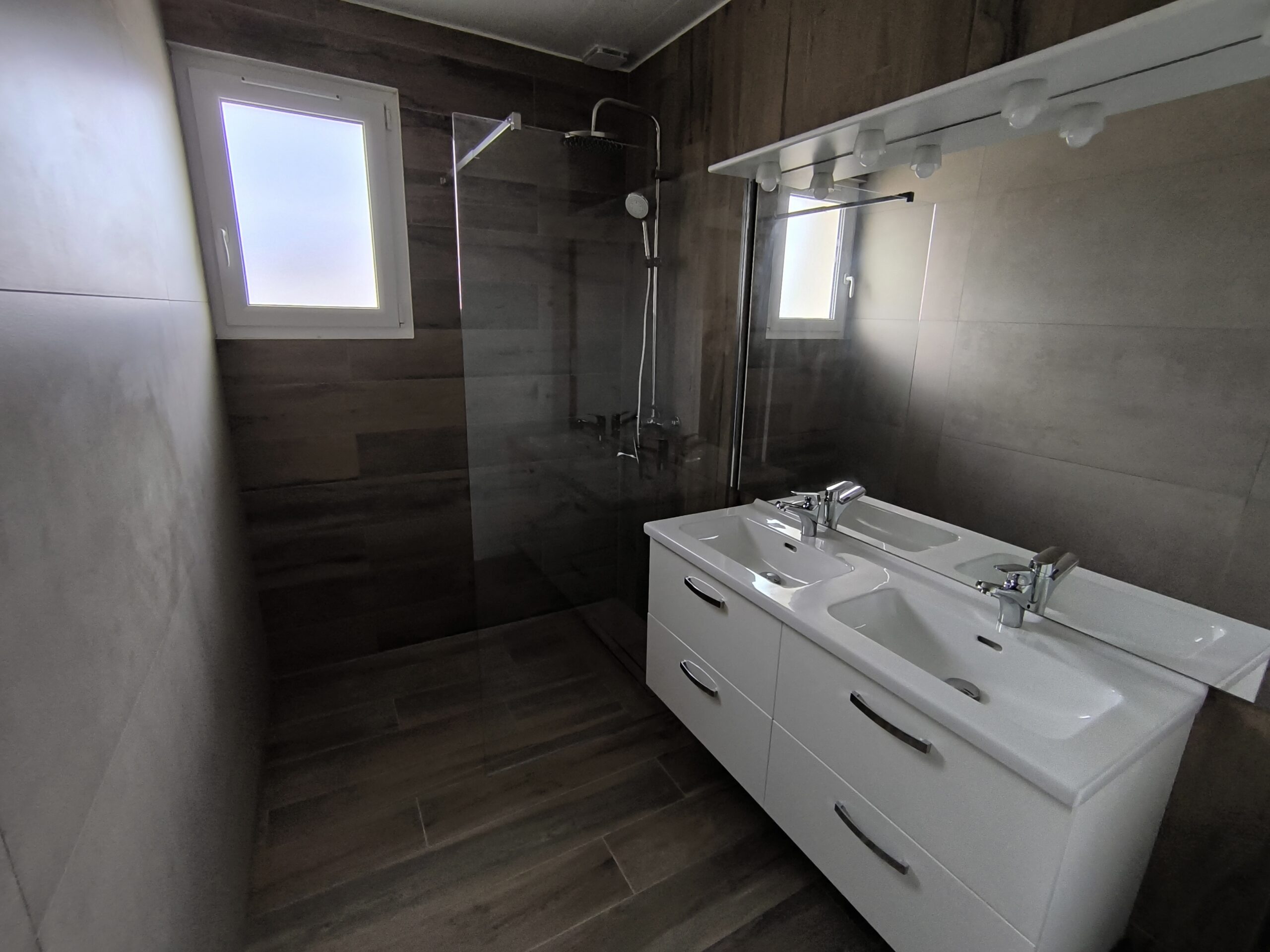 Une salle de douche à l’italienne, un WC. Le rdc bénéficie d’un plancher chauffant.